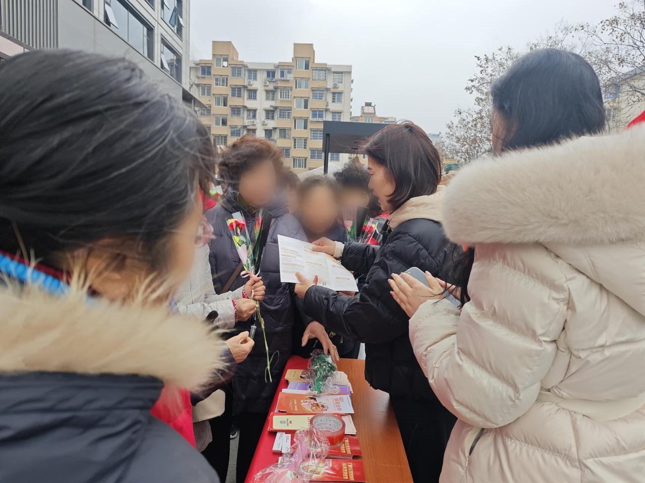 本次活动选址于社区菜场外广场,紧扣三八妇女节普法宣传契机,以鲜花为媒介传递节日温情,同步推进金融知识普及工作。活动现场精心设置金融知识宣传展位、普法墙打卡区、知识问答区,开展女性赠花写心愿、做手工灯笼等暖心环节,营造出温馨且富有教育意义的活动氛围。